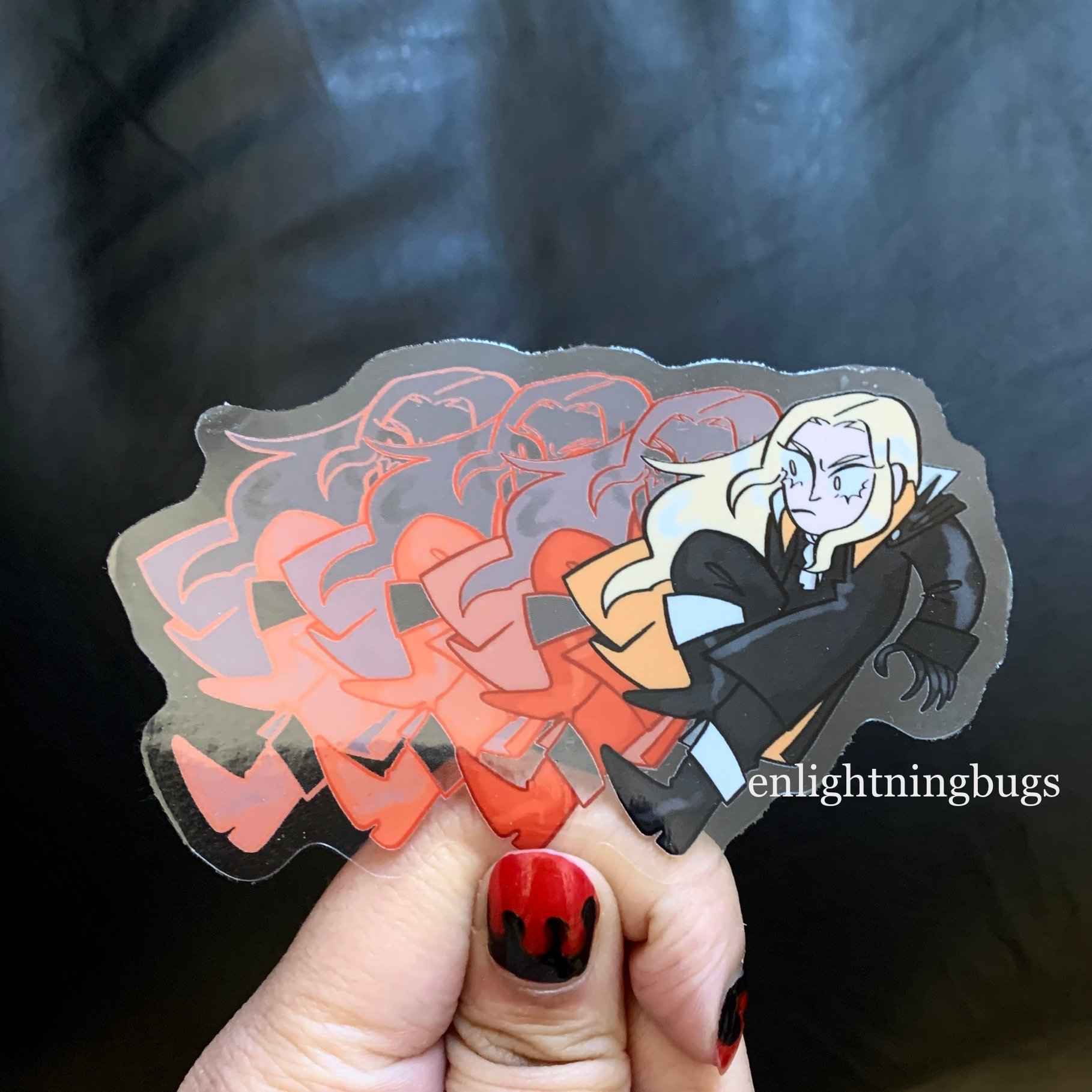 This 2.5x4in vinyl sticker features a clear background and a gradient of transparency on the afterimages. Amazing!!