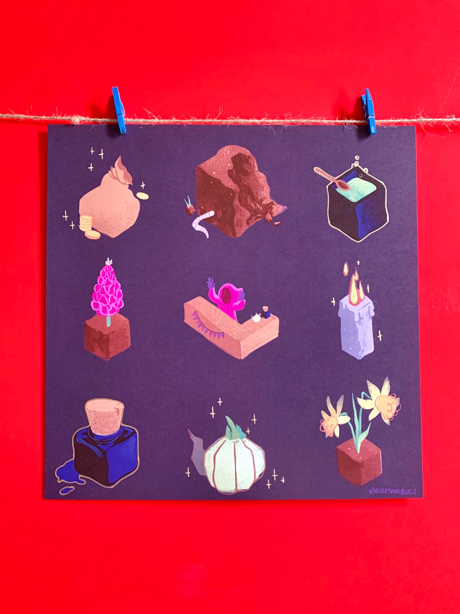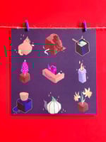 8x8 print features 9 of the attractive isometric illustrations from the game Spellsforce by Cygni and Enlightningbugs. But you don’t have know that to enjoy this witchy print on your walls!